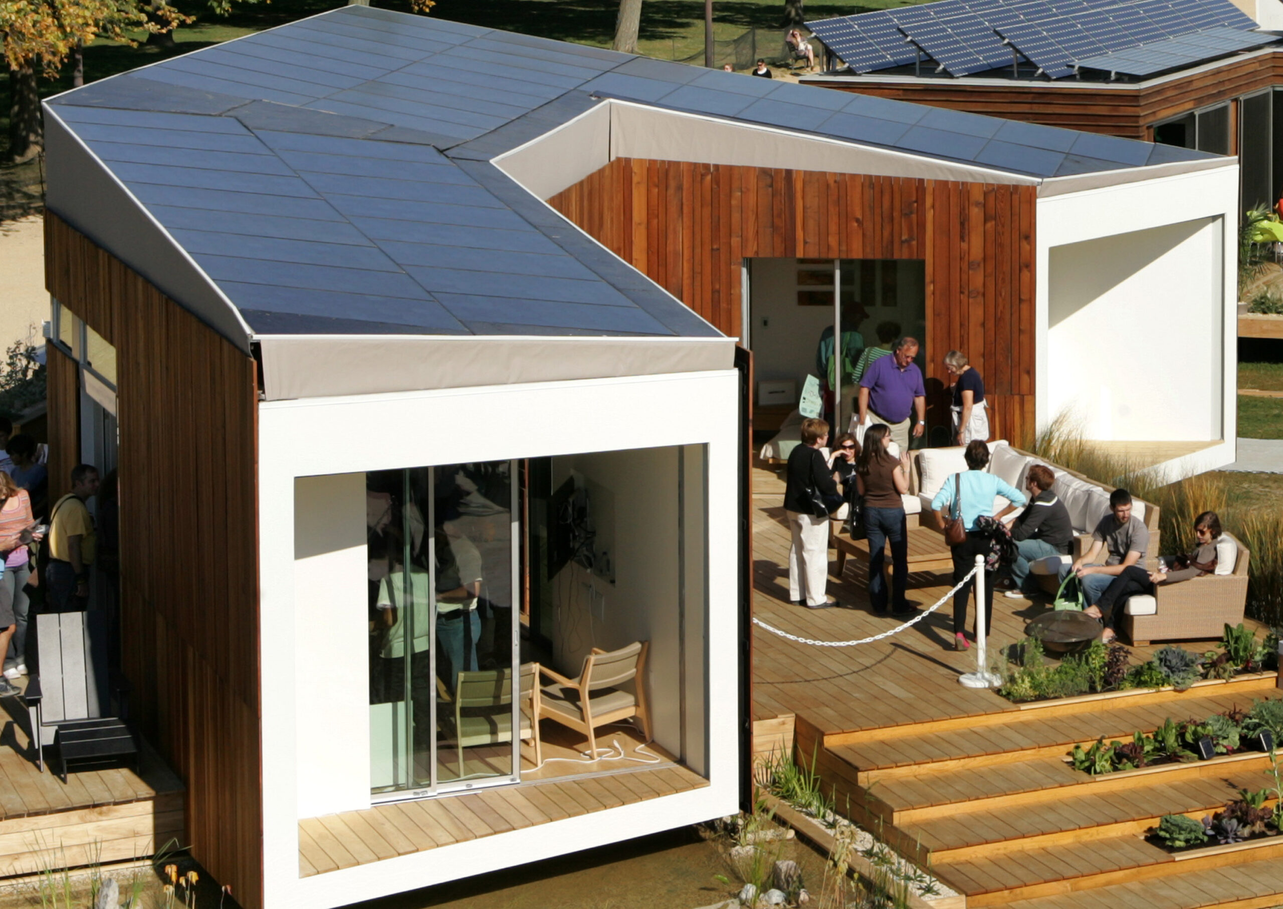 Form versus function is always cause for debate in architecture; Jeff Stein, dean of Boston Architectural College, part of Team Boston, said the decathlon provides a new way of thinking about both. He noted that in Western society, people spend an average of 72 minutes a day outdoors.