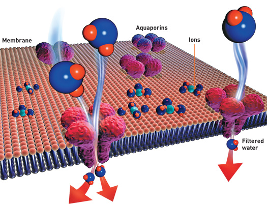 Plants pull water into their roots by osmosis, using tiny channels called aquaporins, a method that doesn’t require any energy. Now a Danish company called Aquaporin is developing a membrane based on that same principle to extract pure H20 from saltwater at about a third of the cost and a tenth the energy of conventional reverse-osmosis systems. The membrane’s protein channels, each just a few nanometers across, allow a stream of water molecules—and only water molecules—to pass single file at a rate of one billion per second. No pumps are needed to force the water across the channels.
