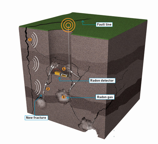 As uranium in the earth decays, it emits radon gas, some of which collects in pockets underground. Some seismologists hypothesize that earth shifts imperceptibly in the days before a quake, causing fractures that puncture the pockets and release more radon. But it would take a lot of data to test the theory.