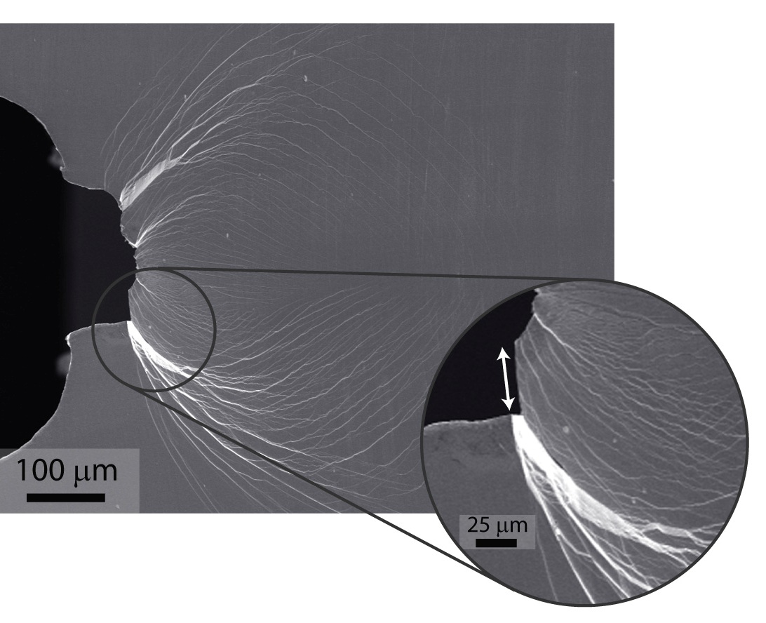 “It is very easy to form these shear bands, but it is difficult for them to become cracks. The net result is, you get a lot of shear bands forming, and this causes plasticity — you can bend it very readily,” Ritchie said.