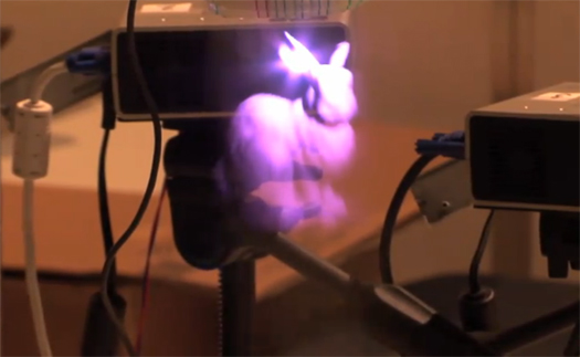 A new, truly 360-degree 3-D display has been developed by researchers at Osaka University. The fog display is created by three projectors each beaming a different image into a column of thin fog, making the resulting image appear 3-dimensional from all angles. This technique means that viewers can physically walk around the display to see it from different vantage points without losing the 3-D effect.