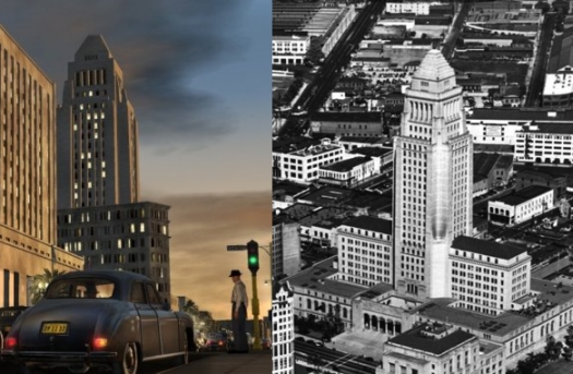 The booming decade also meant a boom in real estate, which meant construction. Everywhere. Team Bondi incorporated details from the construction, captured by Spence, into several missions in L.A. Noire_–without Spence’s photos, Team Bondi never would have understood the now-abandoned construction methods used at the time. They even reproduced in full the now-unrecognizable Pershing Square–Los Angelenos can’t experience, as Wood says, the “curved footpaths, street lamps, the food stall and the fountain” that were integral to the park. But players of _L.A. Noire can wander around in the park to their hearts’ content.