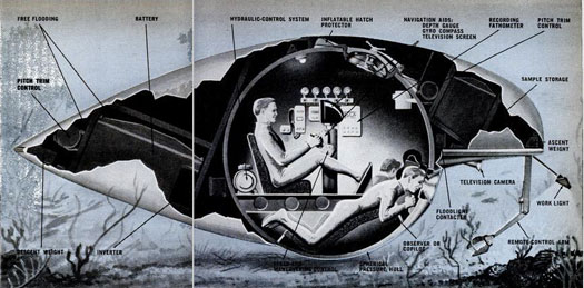 By definition, submersibles lack the autonomy, power, and size of submarines. Most of the vehicles covered in this gallery couldn’t function unless they were tethered to a surface ship. While Edwin Link dreamed of using submersible to facilitate week-long “camp outs” under the sea, these vehicles were barely equipped for comfortable living. But for the purposes of exploration, leisure, and even undersea farming, they were perfect (well, as perfect as technology back then would allow).