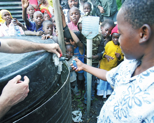 The next day, at the Mukuru school kitchen, Culhane zeroes in on a disconnected metal sink that no one’s been using, an ideal site for installing an InSinkErator that just arrived by plane. He and the school’s art teacher, David Redmond, spend half a day hunting down beat-up tools and frayed extension cords and drilling out the drain opening to hold the disposal. Another teacher, Henry Okeyo, lends a hand, and when the work is finally done, a pipe feeds the InSinkErator waste straight from the kitchen into the digester. Another pipe brings fuel into a biogas-ready stove bought from the Jamhuri Energy Centre.