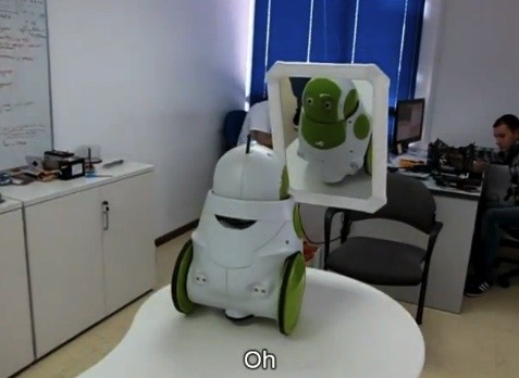 Qbo, to its credit, deals with this kind of existential crisis an awful lot better than I would. After identifying the Linux penguin as simply “penguin” (Qbo is built on Linux, hence that particular choice of penguin), Qbo encounters a mirror. “Who is this?” says Qbo’s handler, in a statement that would break the will of a lesser ‘bot. After being told that the image in the mirror is itself, Qbo then utters exactly the kind of statement we all wish we could say when looking at ourselves in the mirror: “Oh, this is me. Nice.”