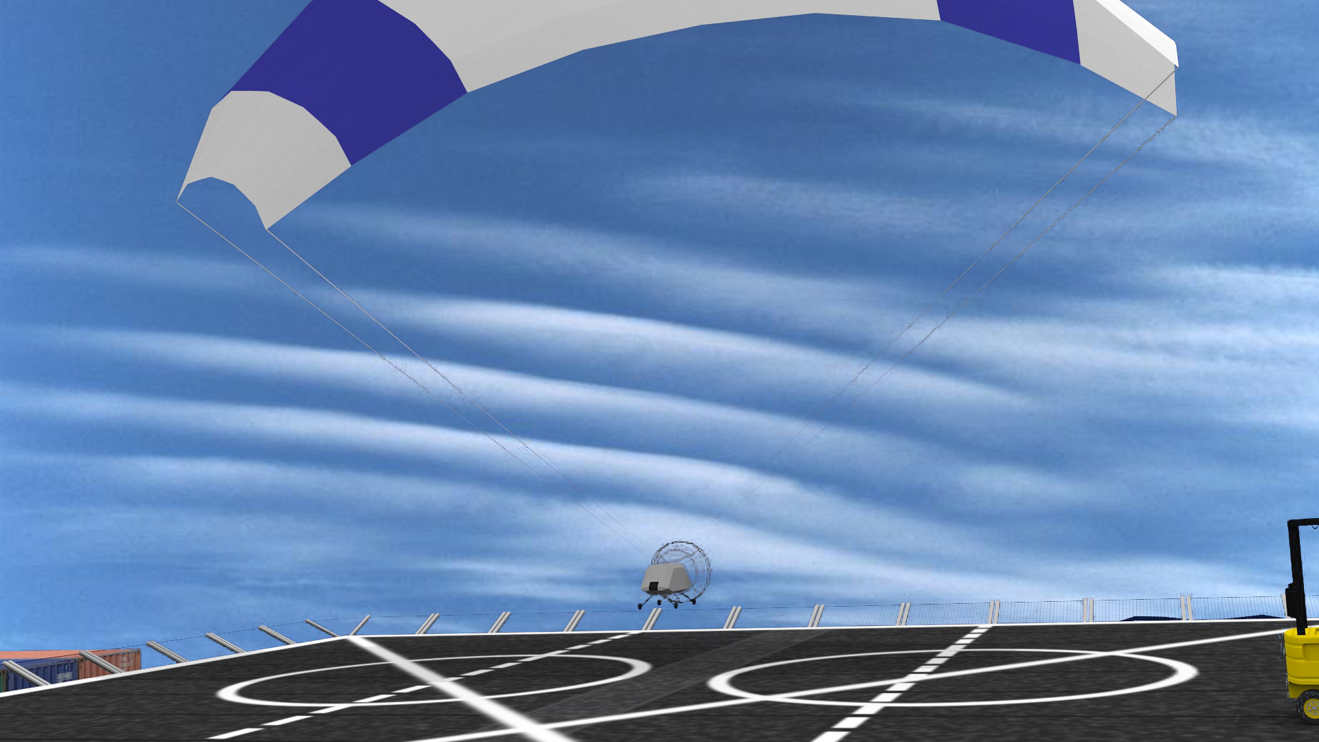 First, it designed a mission management module that can store easily inside a shipping container for use on board the ship. From here, aid workers can coordinate their missions and control various other TEMP technologies–technologies like the ParaFoil Air Delivery System, an unmanned powered paraglider that can ferry 3,000-pound pallets from the deck of the ship across the water to sites onshore. With multiple ParaFoils deployed as an “air bridge,” Raytheon says it can move 125,000 pounds per day inland, as the individual UAVs can travel up to 75 miles without refueling.