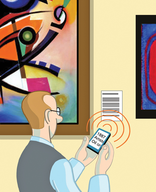 NFC could enable users to pull information about anything they encounter directly to their phone. When a user waves an NFC-enabled phone within two inches of an NFC tag (a sticker containing a radio and a small memory chip that holds content like text and URLs), the devices “see” one another’s electromagnetic signatures, connect, and pass data across the 13.56-megahertz frequency.