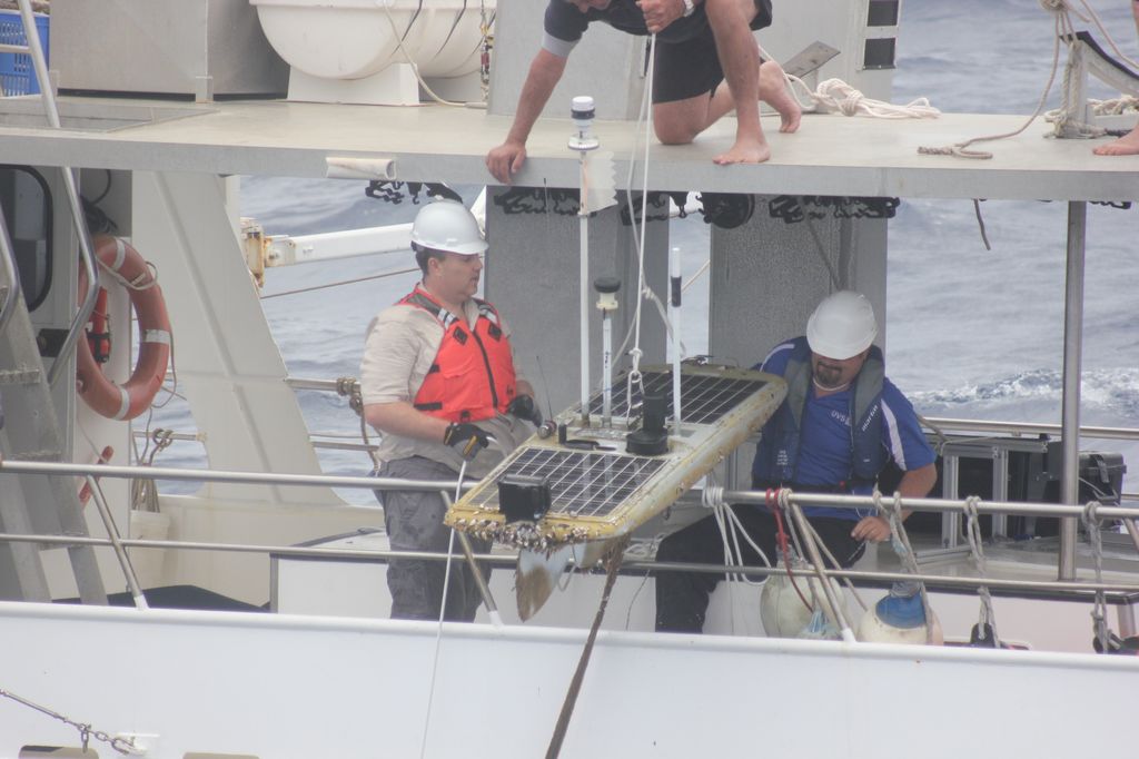 That makes Wave Glider ideal for a range of scientific missions, the kinds of data gathering expeditions that don’t need to move fast and in fact don’t want to. Solar panels spread across the float unit can power an array of instruments–in Papa Mau’s case, those include a weather station measuring air temperature, barometric pressure, and wind speeds, as well as a wave sensor recording height, period, and direction, a submersible fluorometer capable of measuring chlorophyll-A, and a CTD (conductivity, temperature, depth) payload also able to measure dissolved oxygen in the water. The sensor package wasn’t designed to discover anything in particular, but simply to create an unprecedented data set–refreshed every ten minutes and uploaded to the Iridium satellite network–as Papa Mau trudged across the Pacific. That’s more or less the entire idea behind Wave Glider: gather ocean data consistently and without interruption, until the end of time if possible.