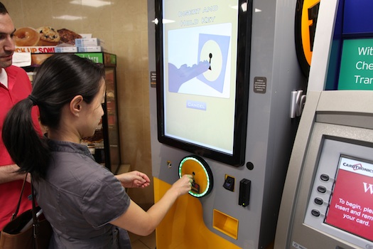 Here’s how it works. When you first go to a kiosk, you scan the key you want copied. If you like, you are able to make a copy right then and there for $3.49, for a basic key, or $5.99, for a novelty one.