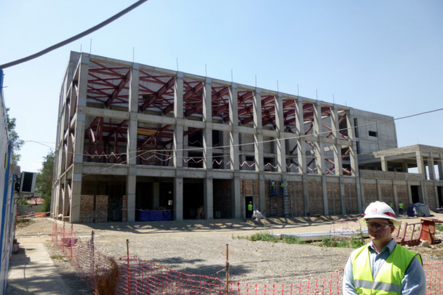“I would say this could take just about anything,” Dan Erbach, an engineer from AECOM, the contractor overseeing the project, said during a tour of the site, which is currently a set of bulking concrete stacked three and four stories high, set atop a remediated field. “There’s more than twice as much strength in this building than any other building in the city.” (The building’s seismic standard was the result of an intervention by the government, which placed new requirements on the project before construction began in 2011. That pushed the initial completion date back a year to September 2015.)