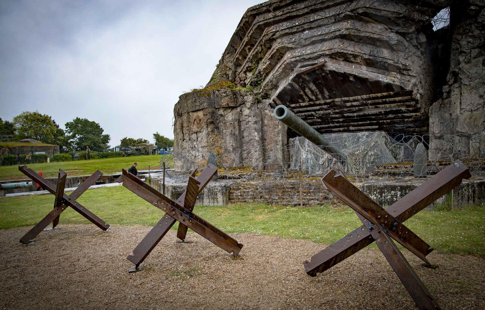 A US Army Engineer School correspondence course on fortifications describes steel hedgehogs as “relatively lightweight for the obstacle effect they provide, and they are quickly installed or removed. They are designed to revolve under wheeled vehicles and puncture them or to belly up tracked vehicles. Unless kept under observation and covered with fire, the enemy can readily move them aside.”