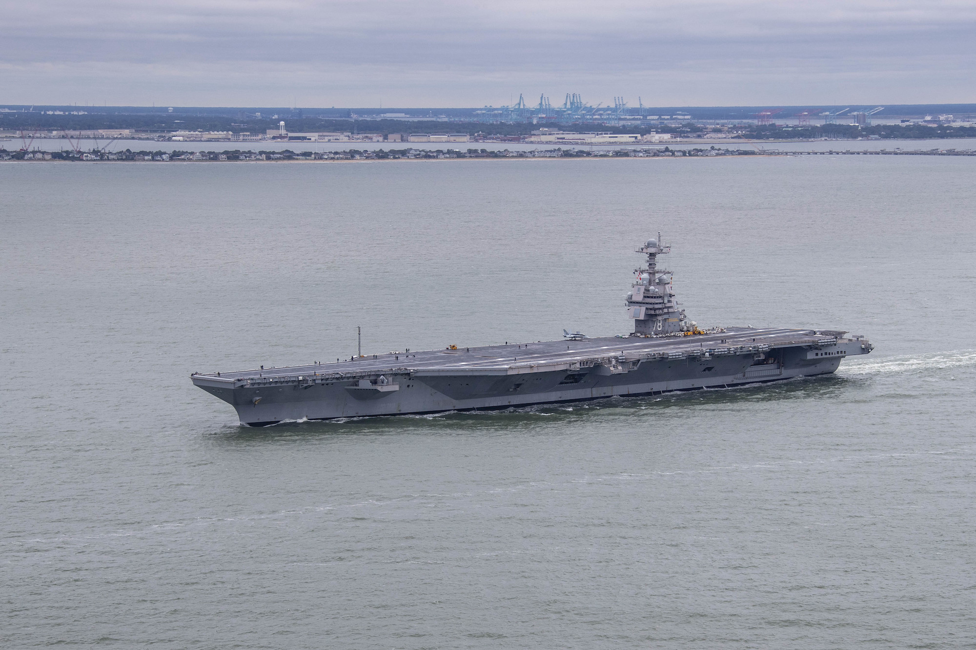 On its deployment, the Gerald R. Ford will travel with a flotilla, formally referred to as a Carrier Strike Group. This will include three destroyers, a guided missile cruiser, two cargo ships, and an oiler, which carries spare fuel for the other ships and for aircraft. The combination, ultimately, is designed to let the carrier launch aircraft at enemy ships or targets on land, while the fleet protects the carrier from any of a number of hostile threats that might be encountered at sea, most especially submarines.