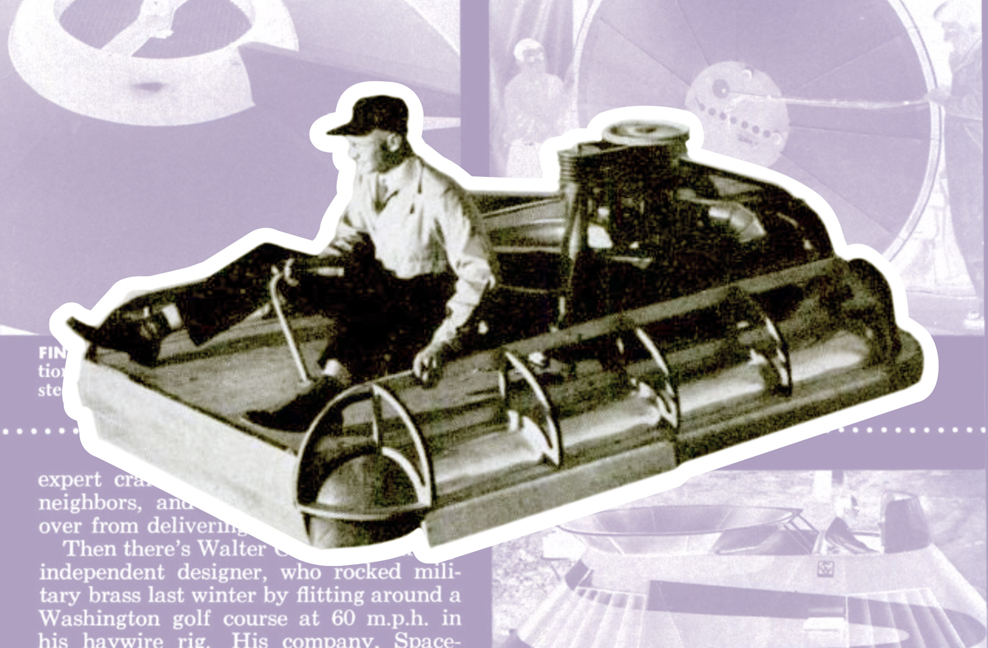 Chris Fitzgerald remembers being fascinated by the Saunders-Roe vessel when it debuted in 1959, the first such commercial ACV journey. “I was in Australia, watching with my family on TV,” recalls Fitzgerald, now president of Neoteric Hovercraft. “I was always interested in flying.” But Fitzgerald had a lot of friends who became cadets and were killed while flying. A hovercraft could be a way of flying “with one foot on the ground,” he says. That’s how he ended up founding Neoteric Hovercraft in 1960 in Australia, which manufactured one of the first personal-sized hovercraft, Neova One. Alongside Ford’s Levacar, Bertelsen’s Aeromobile, and Fitzgerald’s Neova One, the market was cluttered with new entrants, many based in the UK, including Air Bearings, Curtiss-Wright, Cushion Flight, Bartlett’s Flying Saucer, and one of the first American ACVs, Crowley’s Hydro-Air. The future of hovercrafts seemed certain.
