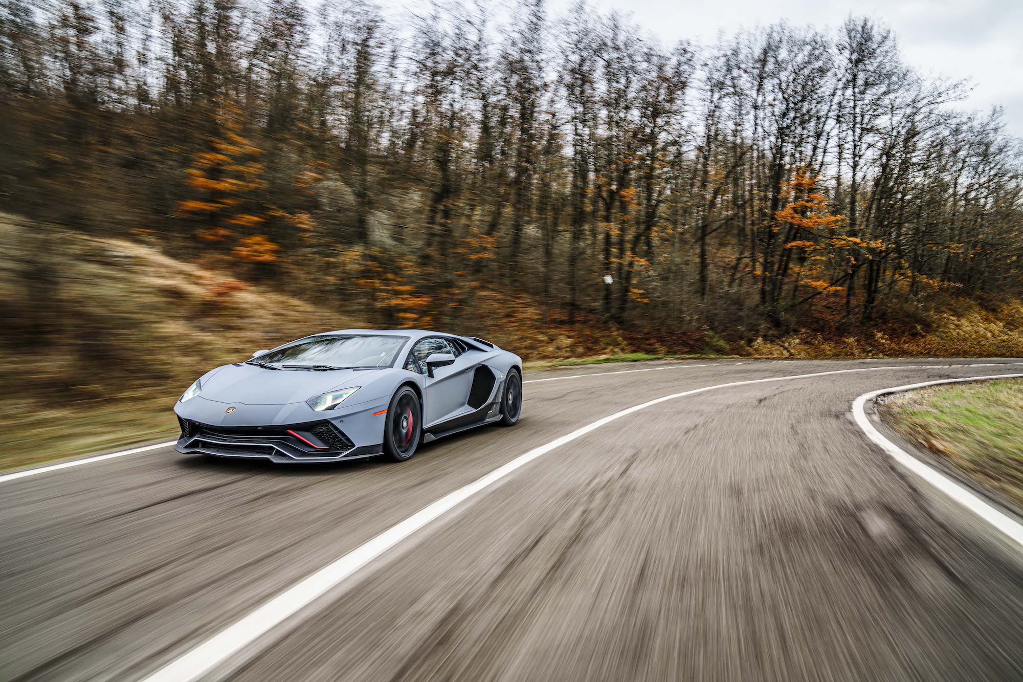 A tug on the right-side steering column-mounted shift paddle engages first gear. A touch of throttle application and I’m underway on V12 power, with the Avendator’s wonderous exhaust note emanating from the anachronistic engine behind my right shoulder. Half an hour later, the Ultimae is slicing its way through the mountain roads outside Bologna, the engine’s power seeming to flatten the steepness of the mountain and the four-wheel steering is straightening switchbacks that look too tight for the Aventador to carve in one try.