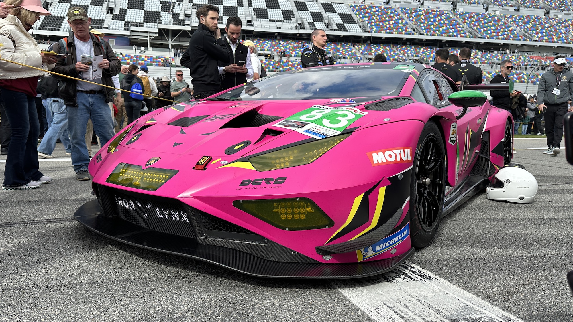 For the 2023 Rolex 24 endurance race at Daytona International Speedway this month, Lamborghini fielded five teams: four in the GT Daytona class and one in the GT Daytona Pro category. The distinctive sound of the Raging Bull Huracáns echoed across the lanes, its voice calling out clearly. One of those teams was the only all-female lineup, the Iron Dames, piloting a can’t-miss-it hot pink Huracán.
