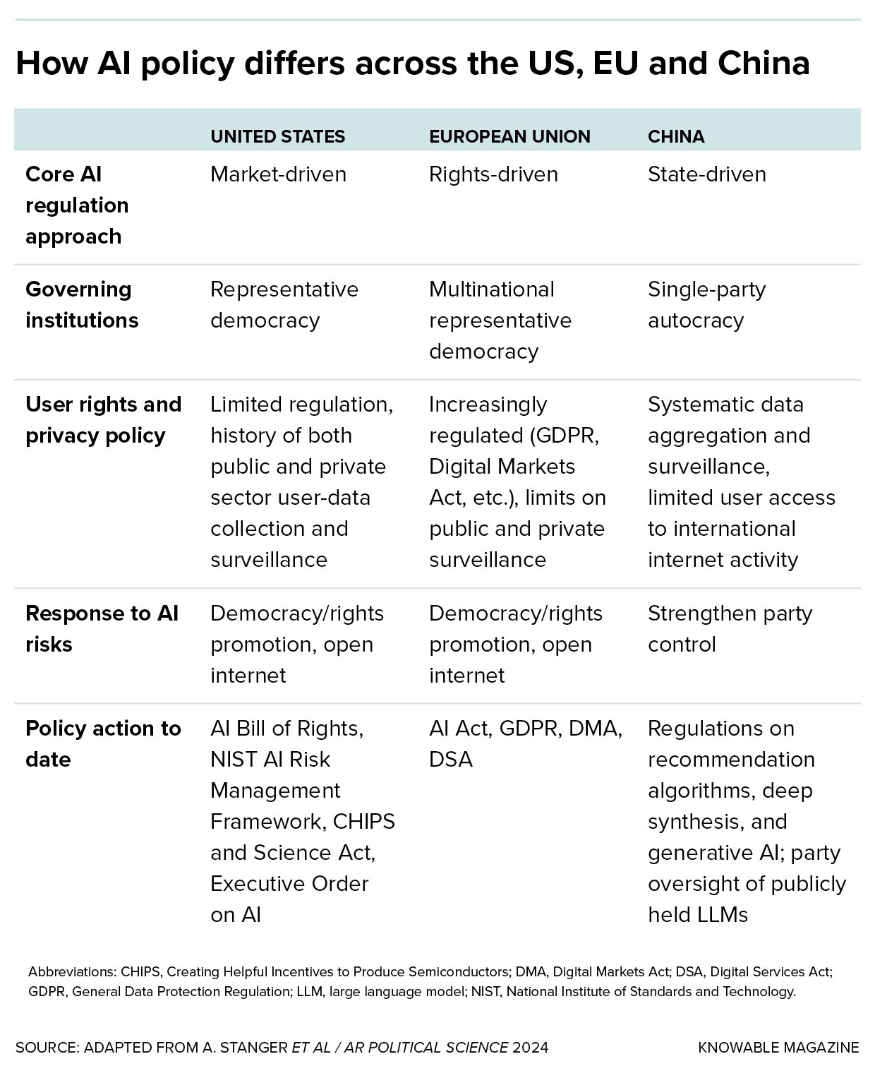 Knowable Magazine spoke with Stanger about how AI can be regulated nationally to serve democratic values and how we can establish a global framework that addresses common challenges. The interview has been edited for length and clarity.