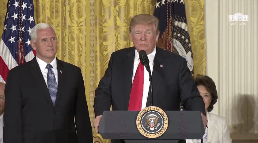 Initially scheduled for 11:30 a.m. EDT, the meeting started 45 minutes late and opened with remarks from President Trump. After first discussing employment numbers, immigration, and other varied topics, Trump announced that he was directing the Pentagon to create a sixth branch of the military, a “Space Force,” and he tasked Gen. Joseph F. Dunford Jr., the chairman of the Joint Chiefs of Staff with carrying out that assignment.