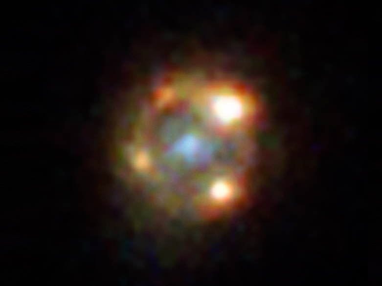 Once he and his colleagues were sure there was nothing wrong with their data, they realized that the light from the supernova was getting magnified by a galaxy passing in front of it. Zooming in, they realized they could actually see four different images of the supernova surrounding the intervening galaxy.