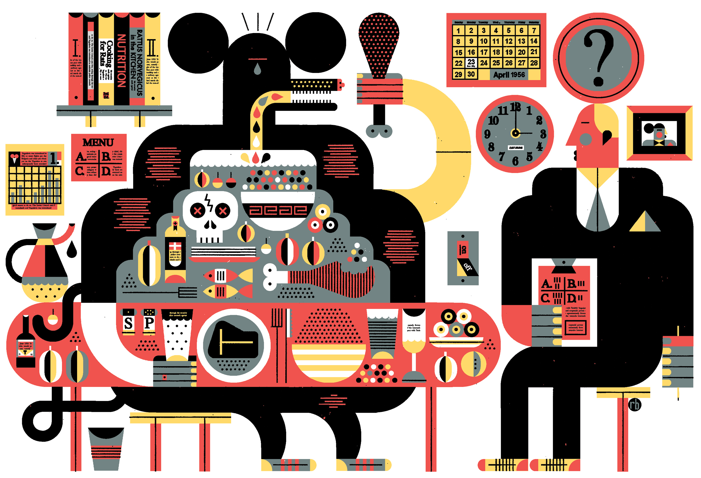 The variety-induced overeating typical of holidays is known as the “smörgåsbord effect,” and was first identified in 1956 by the French physiologist Jacques Le Magnen. To study the effects of food flavors on appetite, Le Magnen made tiny feasts for rats. When he fed the rats unlimited amounts of a single type of food, they would eat until they felt full, and then stop. But when he gave the rats a smörgåsbord with four different flavors of rat chow, the rats would eat about three times as much as normal, filling up again on each new flavor.