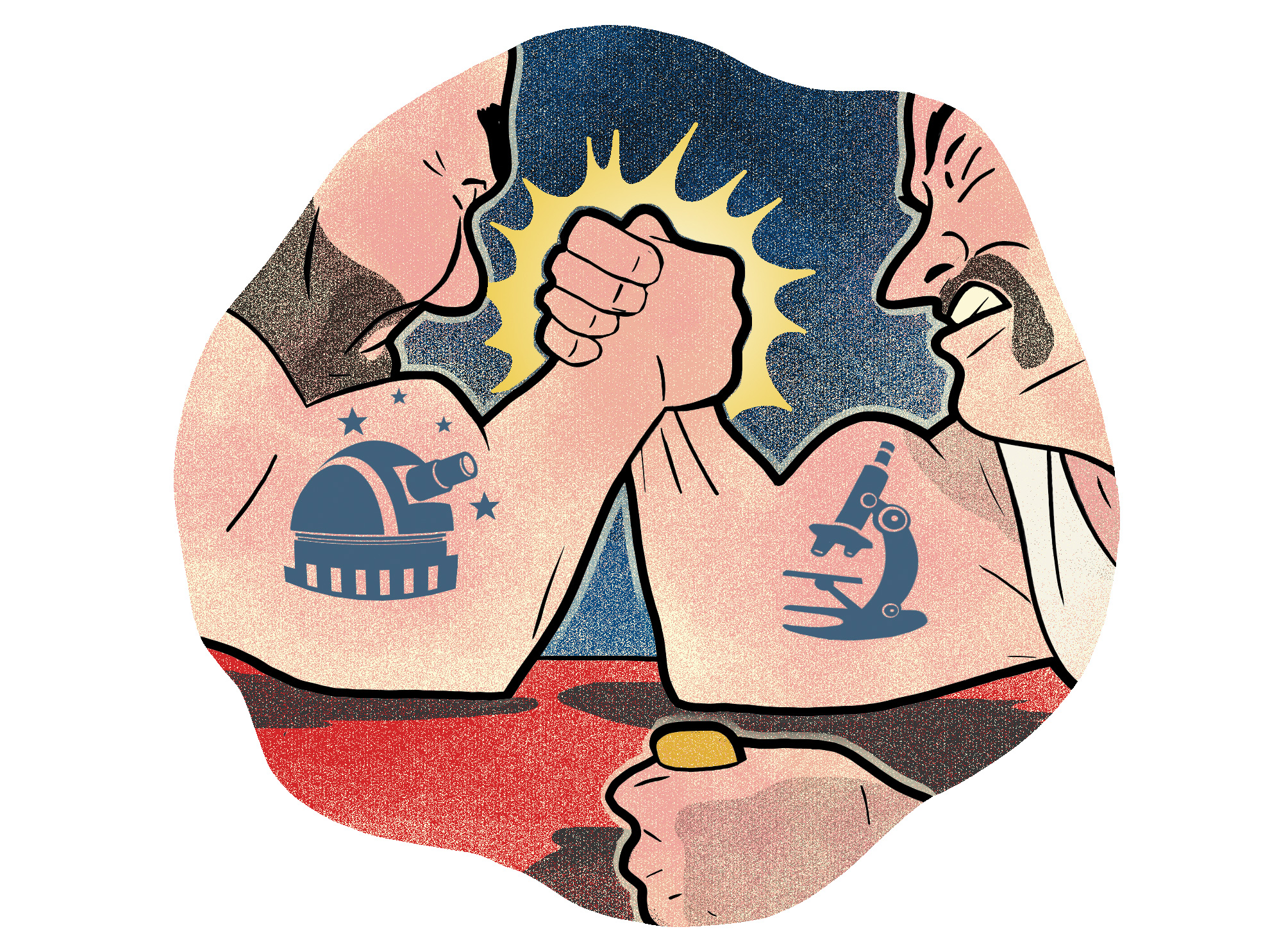 Microscopes like Herring’s take images using electrons, which have a wavelength five orders of magnitude smaller than that of light. Telescopes can’t use the same approach, because electrons from a far-off source would be deflected or absorbed before they made their way to Earth.