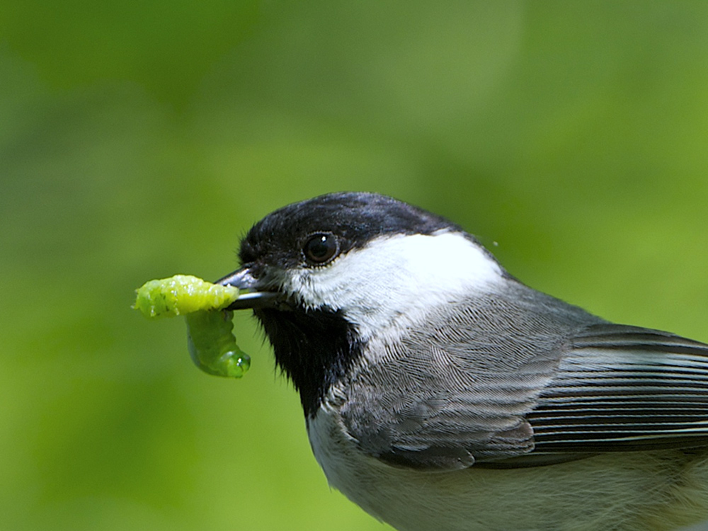 Like songbirds? Right, many people do. It’s a different story when it comes to insects. Mention caterpillars, for instance, to most gardeners, and you’ll have them squirming with horror. But backyard species like caterpillars and spiders actually play a crucial role in supporting our most beloved bird species. As a new study from University of Delaware postgraduate student Desirée Narango and coauthors demonstrates, native plant gardens are quite literally for the birds. It’s the largest comprehensive study to date of the effect of native plant species on a specific species of bird—the Carolina chickadee. It’s also the biggest single piece of research to come out of years of fieldwork during Narango’s PhD, she says, and it offers a tangible goal for conservation-minded individuals to work for in their own yard. That goal is a number: 70 percent. By studying more than 160 yards, Narango found that suburban lawns with at least 70% native trees and shrubs were able to sustain breeding chickadees. Yards with less could sustain adults, but those adults weren’t reproducing at replacement rate, meaning the population was falling. Why are native plants important? When it comes to birds, it’s because those plants have coevolved with local insect species—creepy crawlers that the birds themselves evolved to thrive on, says University of Maryland ecologist Karin Burghardt. Burghardt previously worked with Narango’s coauthor, University of Delaware professor Doug Tallamy, but she was not involved with the current study.